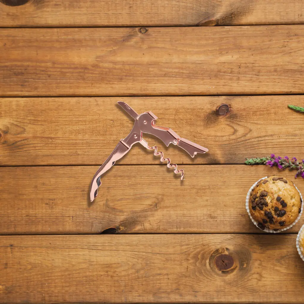 Cavatappi a 2 tempi in acciaio inox con rivestimento in rame galvanizzato.