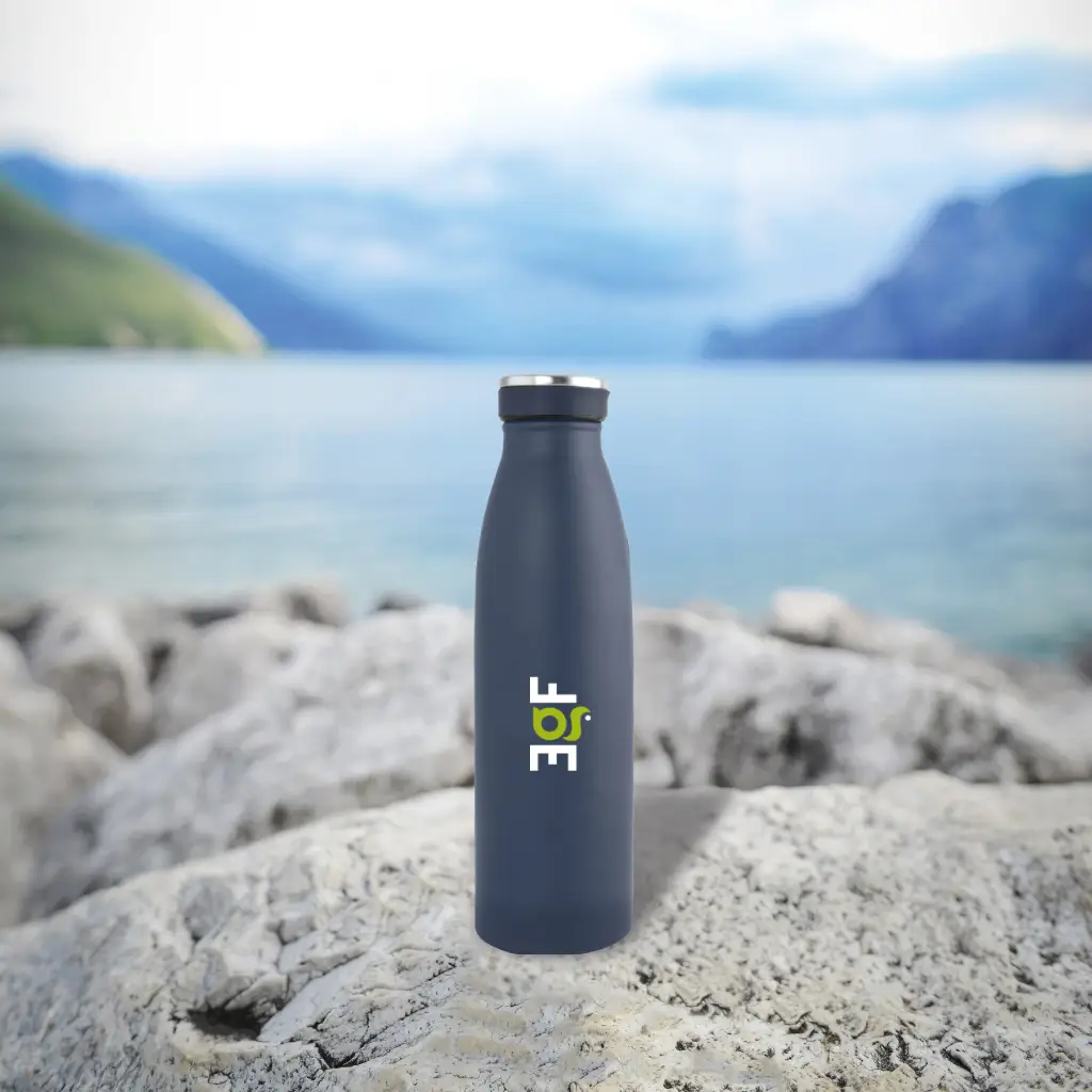 Borraccia termica in acciaio inox doppia parete con tappo a vite con finitura silver.