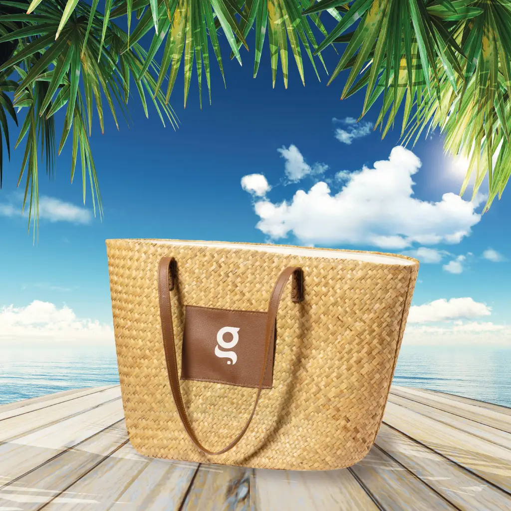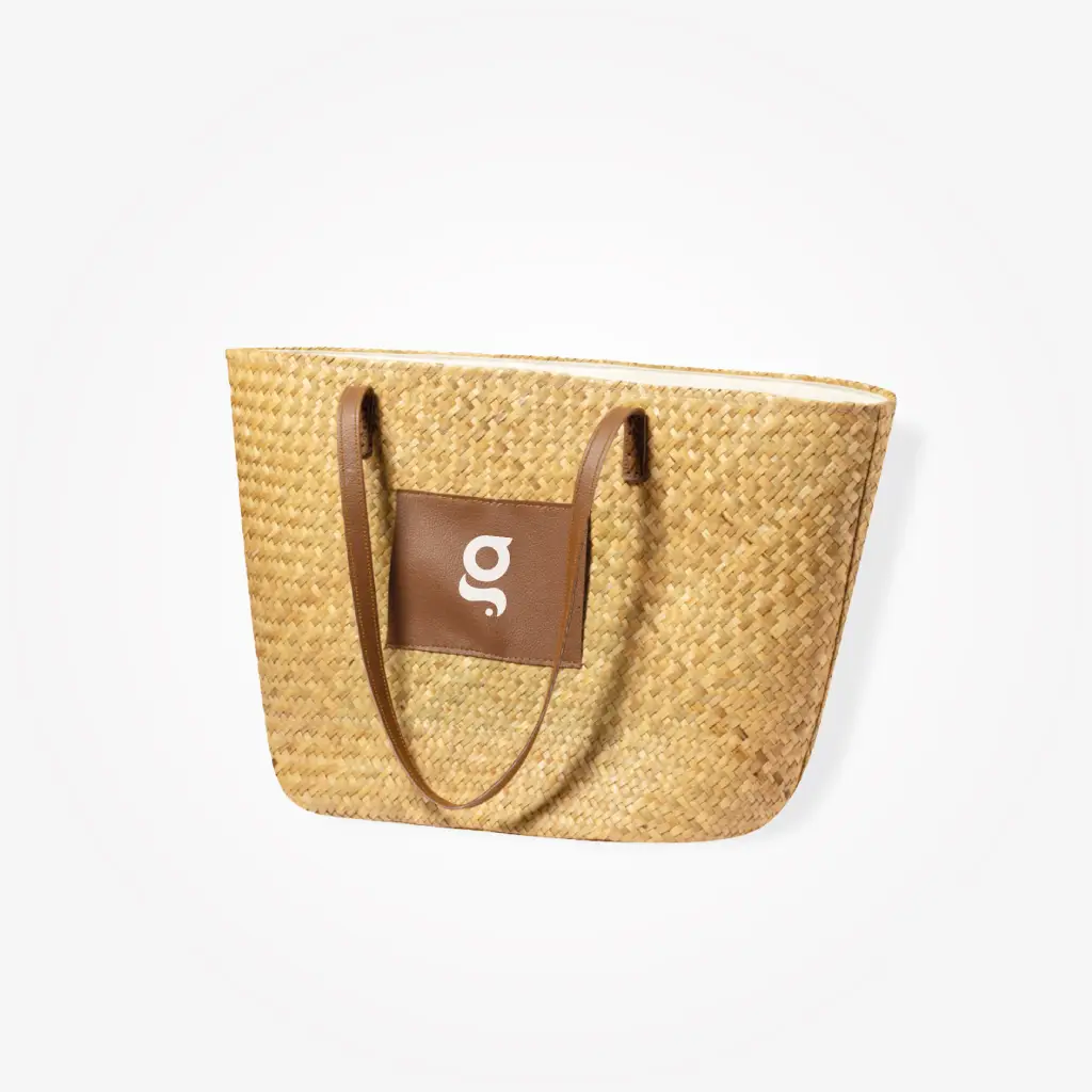 Borsa di paglia dalla forma rettangolare e dal design casual, di grande capienza e con originali manici lunghi in similpelle.