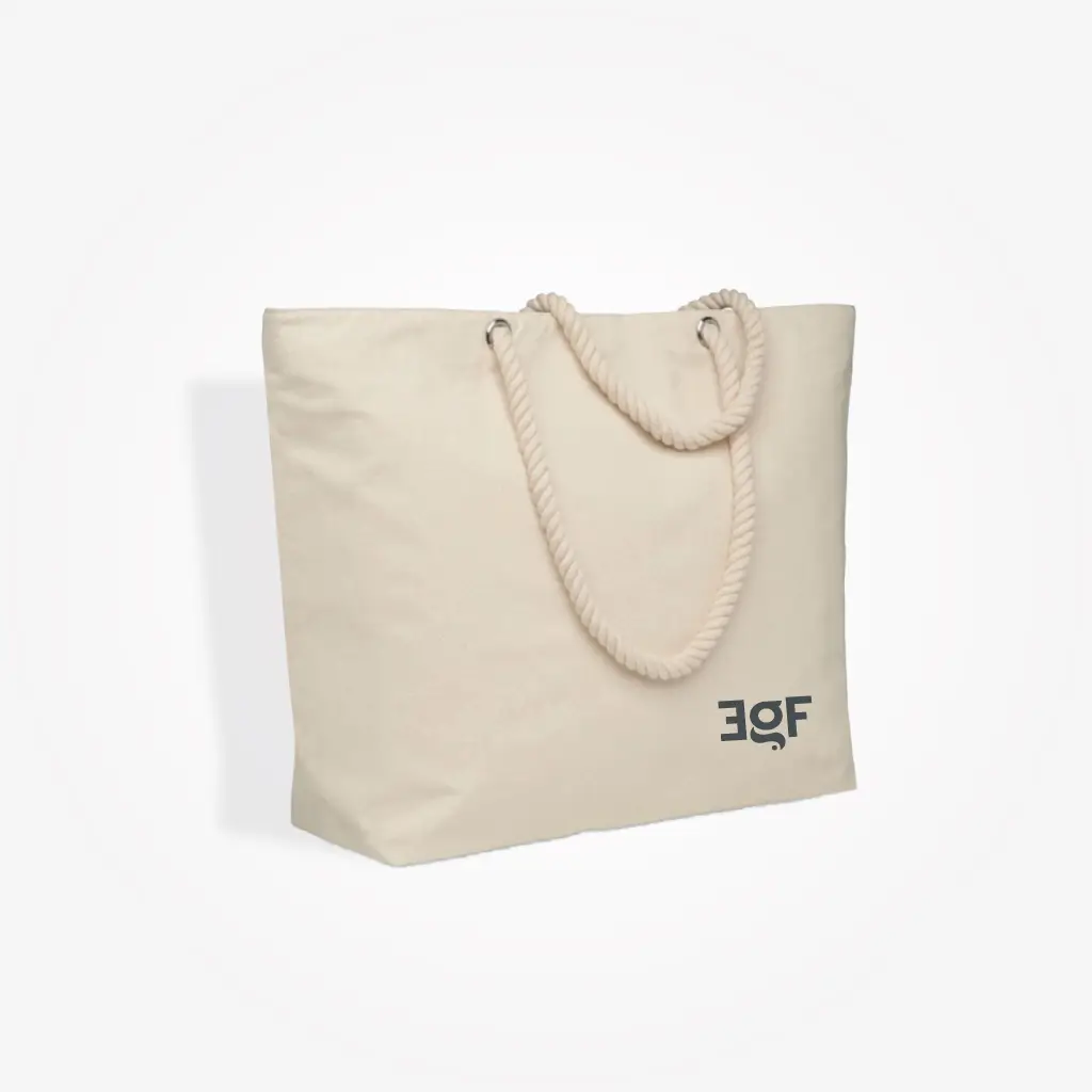 Borsa termica da spiaggia con cerniera in cotone con manico in corda.