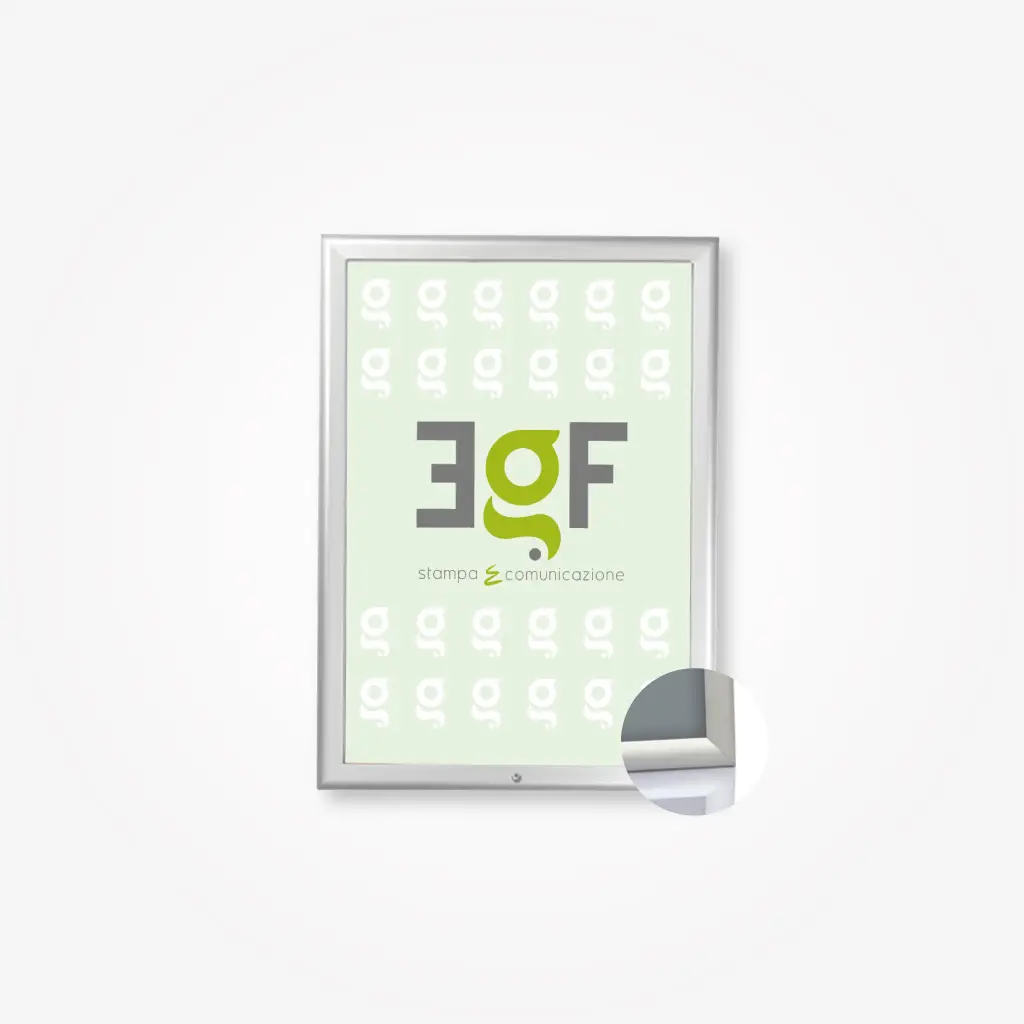 Bacheca con cornice a scatto in alluminio 32mm con angoli a vivo 90°
