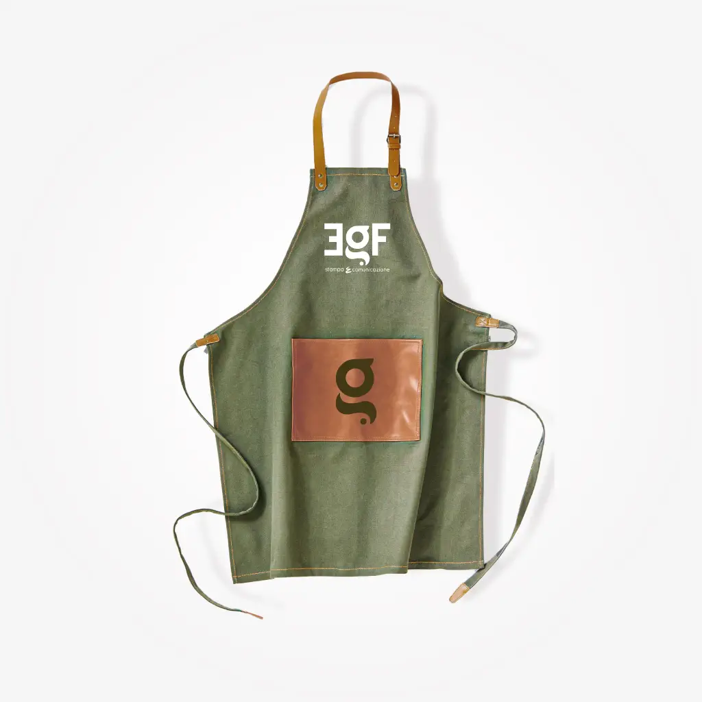 Resistente grembiule in tela stonewashed 500gm2 con dettagli in PU.