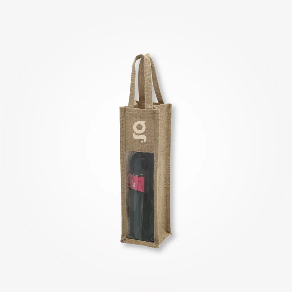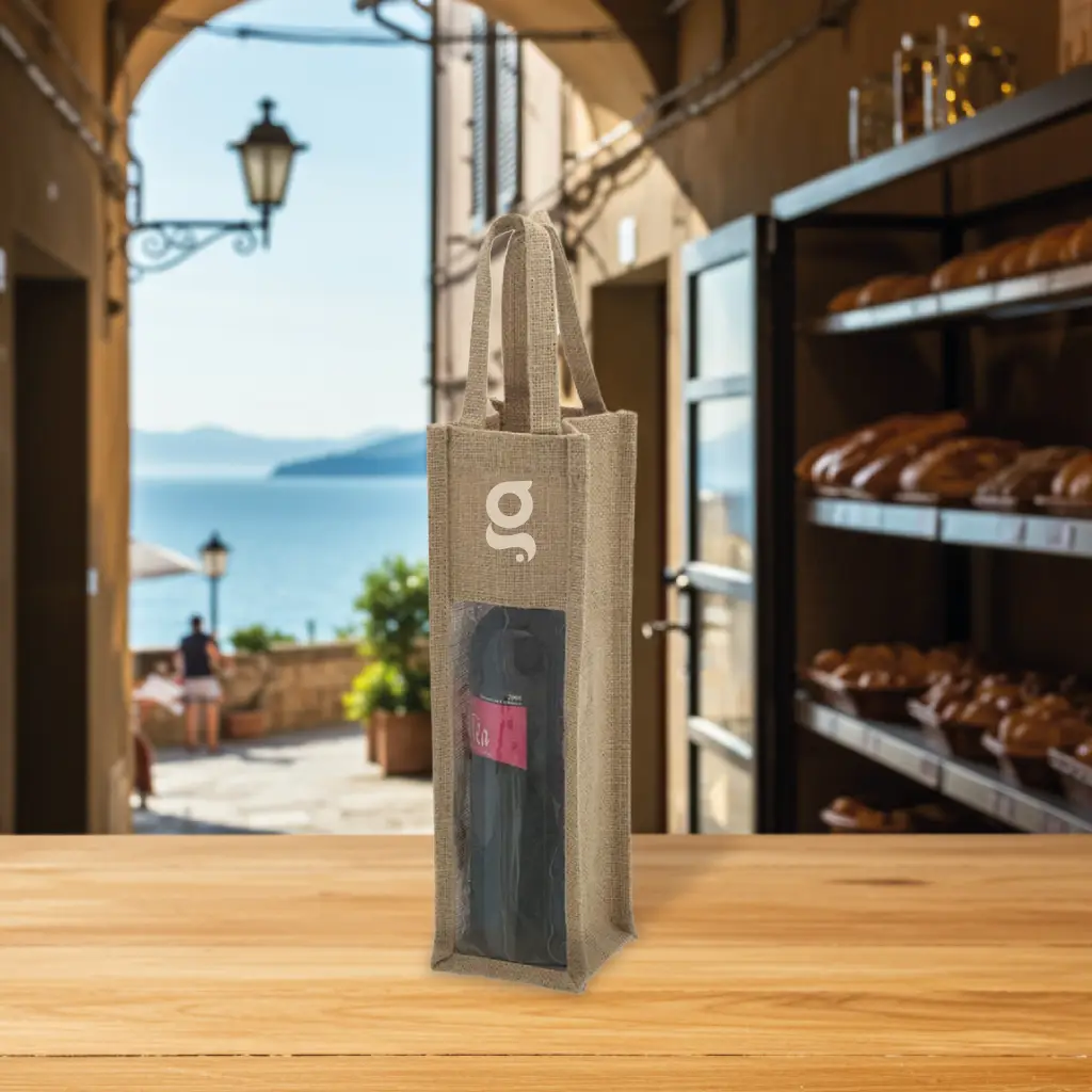 Robusta borsa in juta laminata per 1 bottiglia di vino da 75cl.