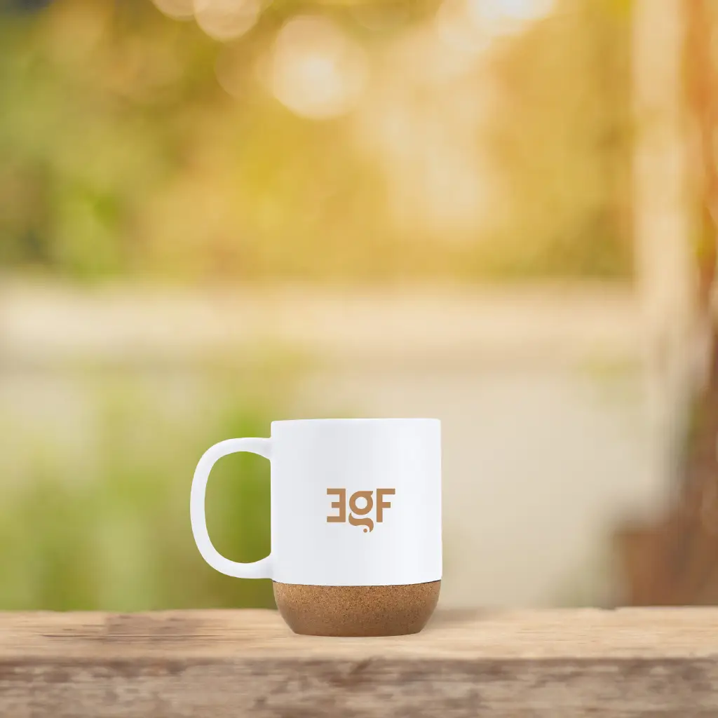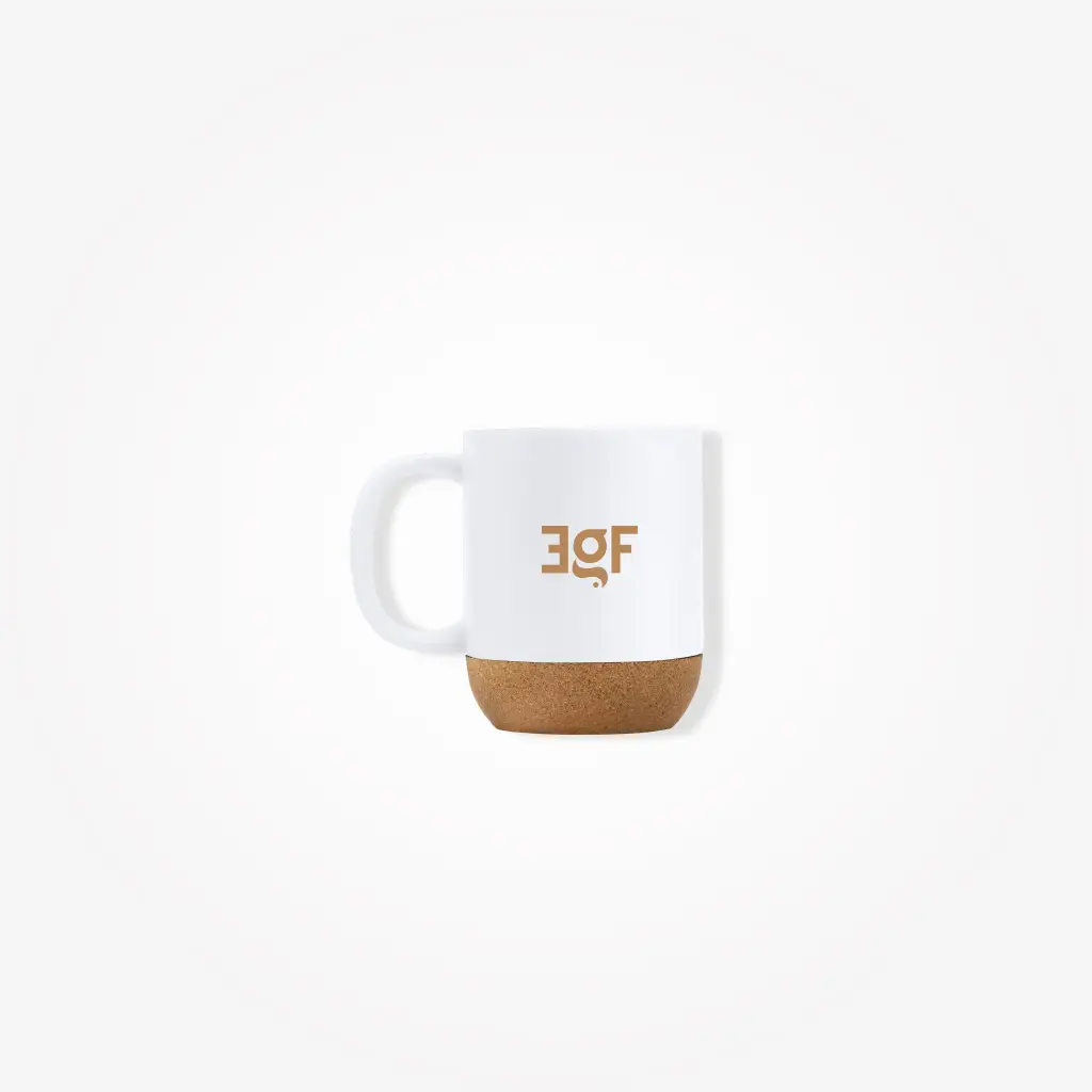 Tazza in ceramica con finitura opaca e base in sughero naturale.